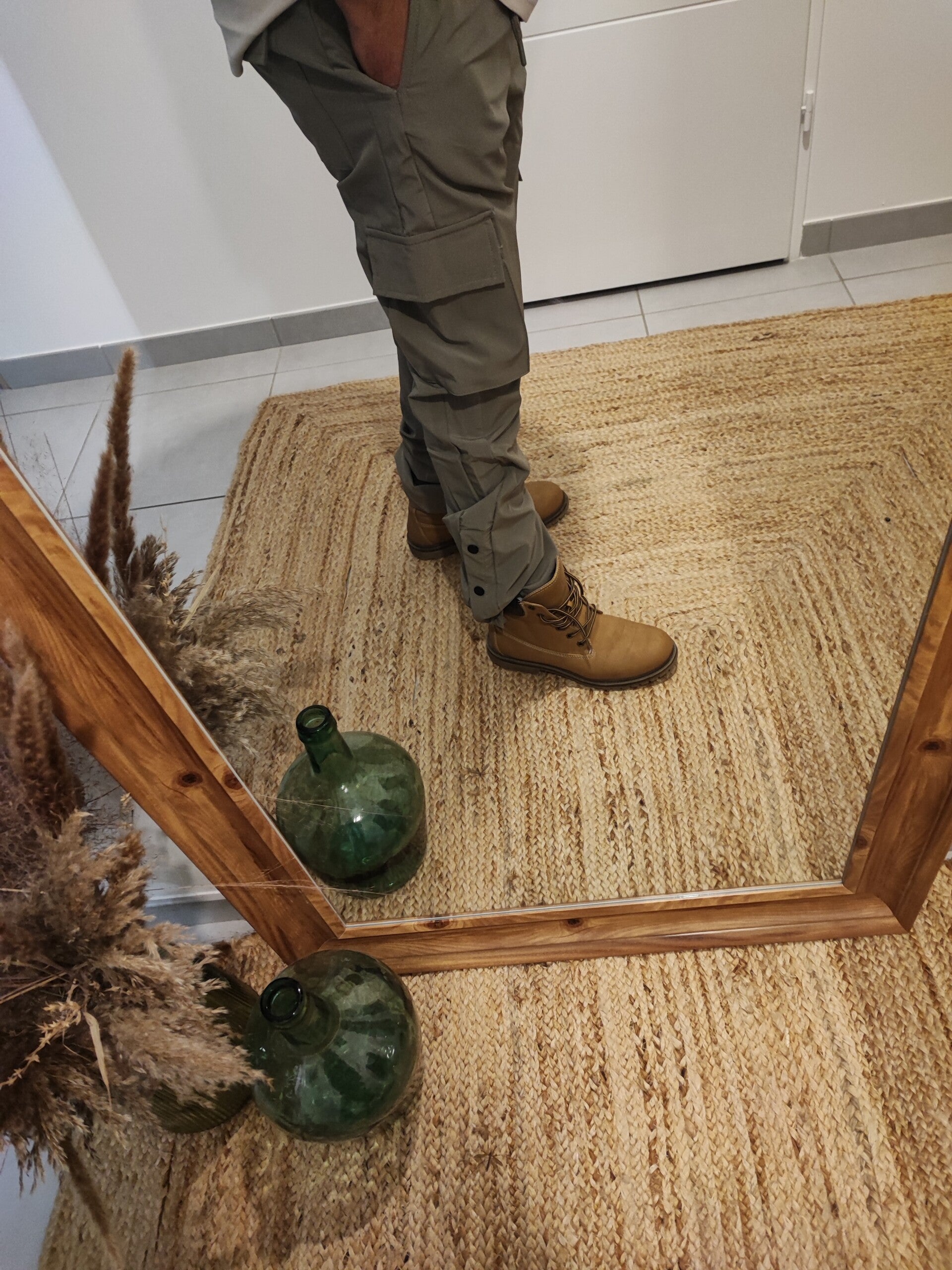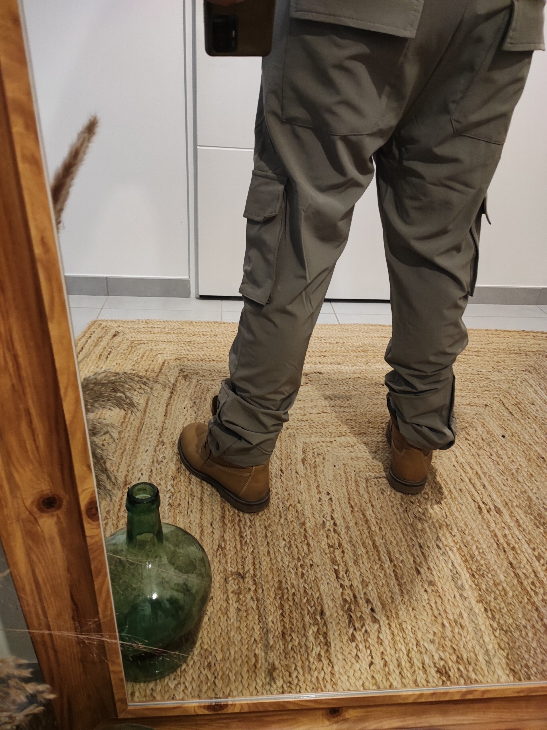 Cargo taupe taille élastique, matière légère très agréable à porter, poches devant et derrière. Détails de pression sur la cheville. Pantalon au style urbain...Tee-shirt oversize 100%coton. Qualité premium.