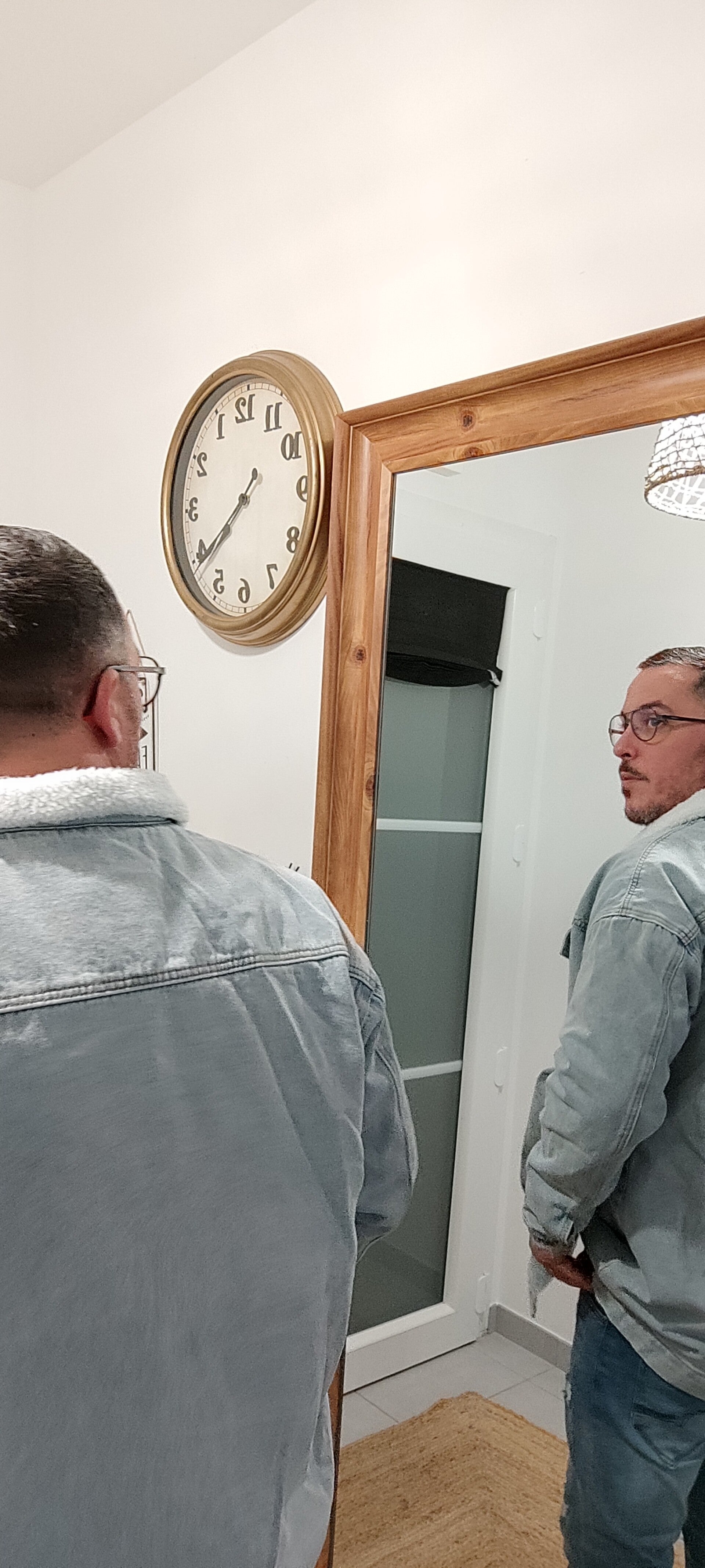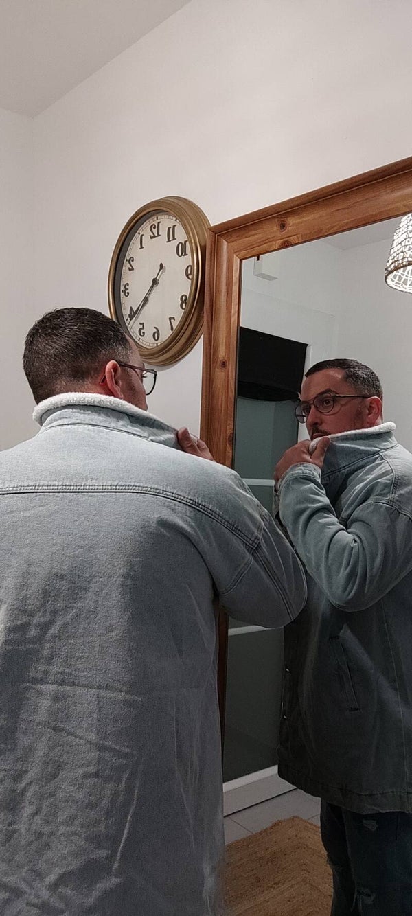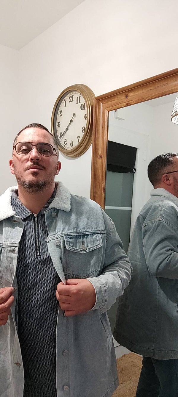 ✅ veste en jean long size, boutonné avec col effet mouton.
