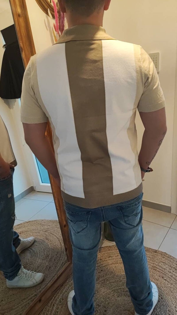 âšđPolo beige et blanc à ligne horizontale une qualité premium léger et parfait pour la mi-saison, qui donne un style habillé et décontracté.