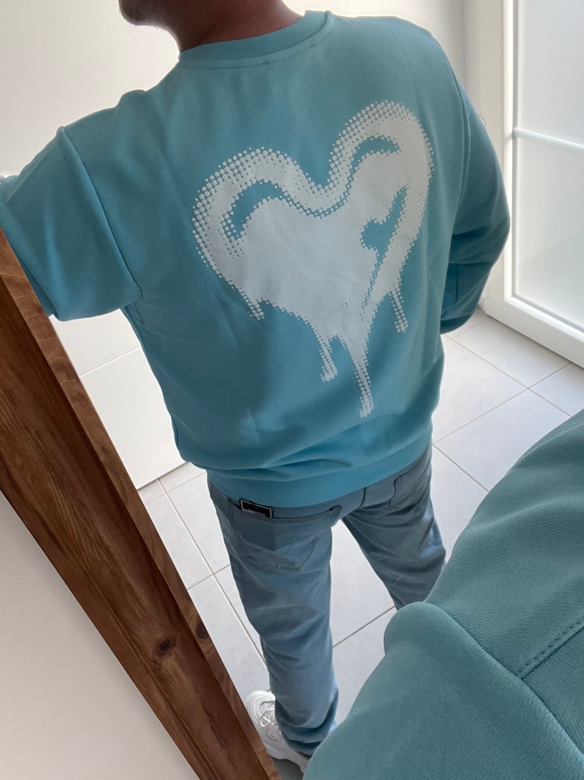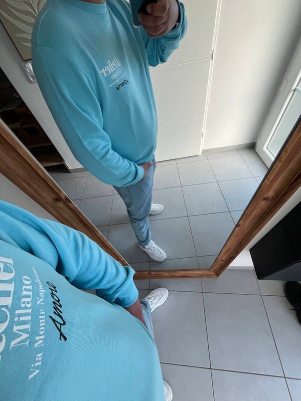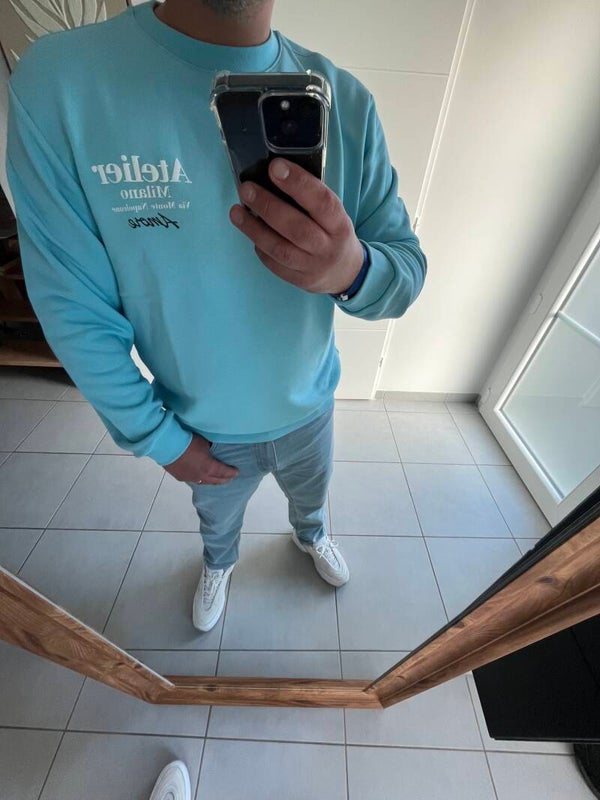 ✨ sweat léger bleu ciel atelier Milano avec imprimer devant et au dos un coeur stylisé façon pixel, élastique a la taille, une couleur parfaite pour les beaux jours ☀️