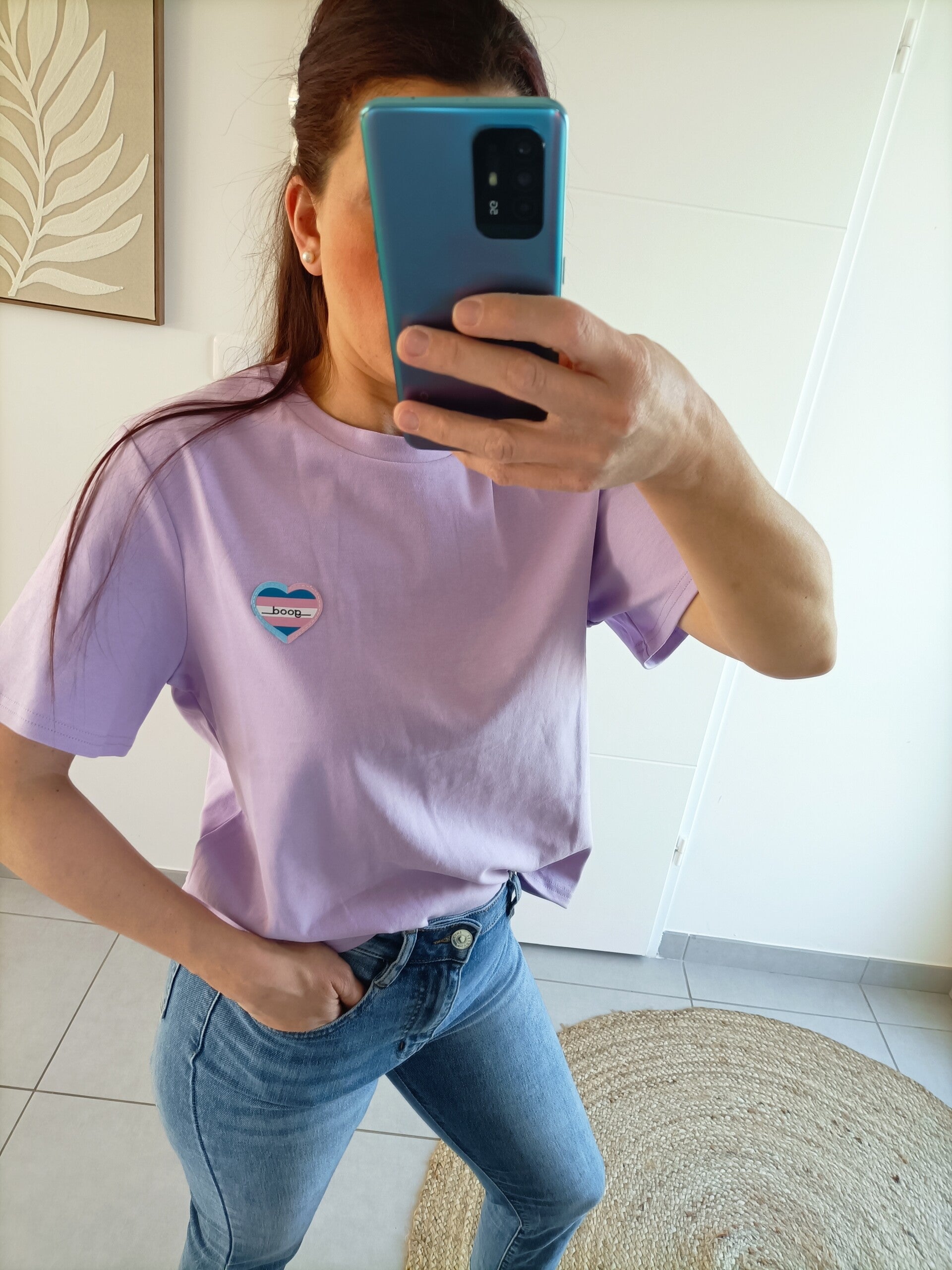 ✨Tee shirt couleur lilas avec son petit coeur en écusson . Sa couleur tendre vous fera succomber ✨