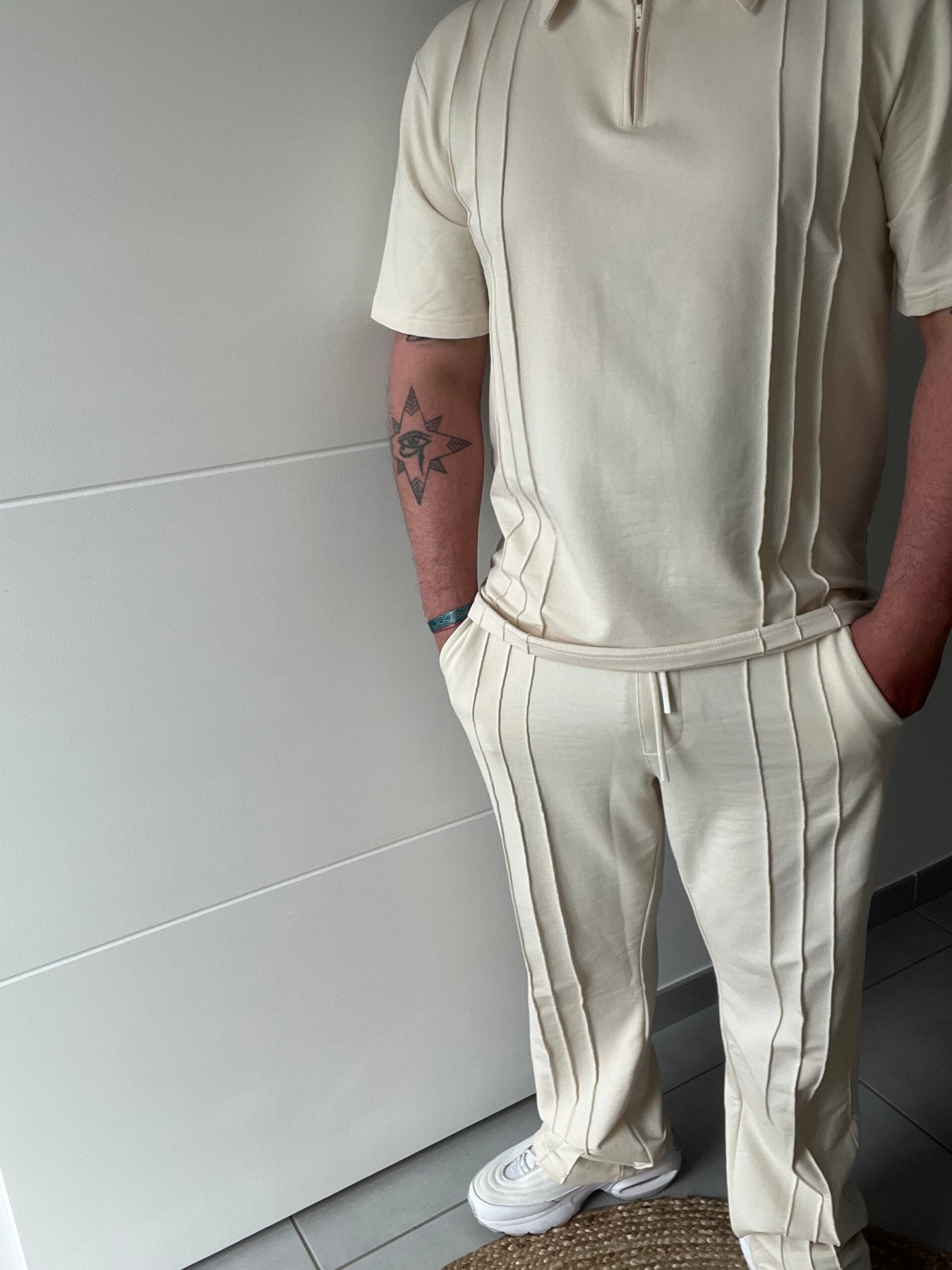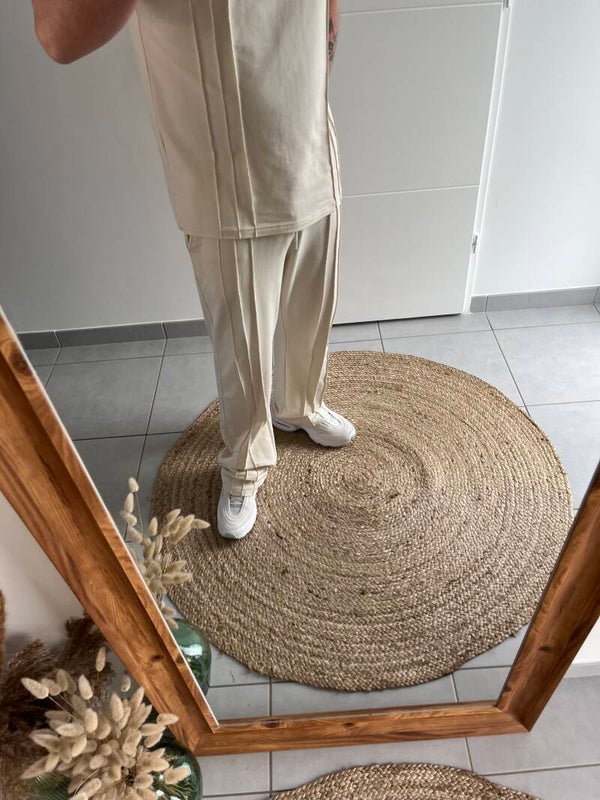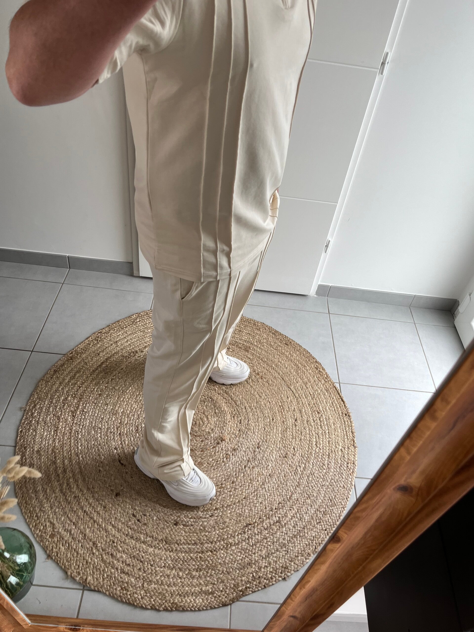âš Ensemble, fluide, beige, léger et parfait pour la saison , Polo avec zip et pantalon, coupe large qui retombe parfaitement sur la basket, un style top, tendance.