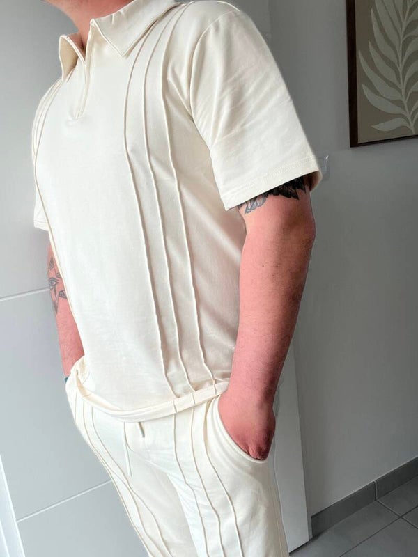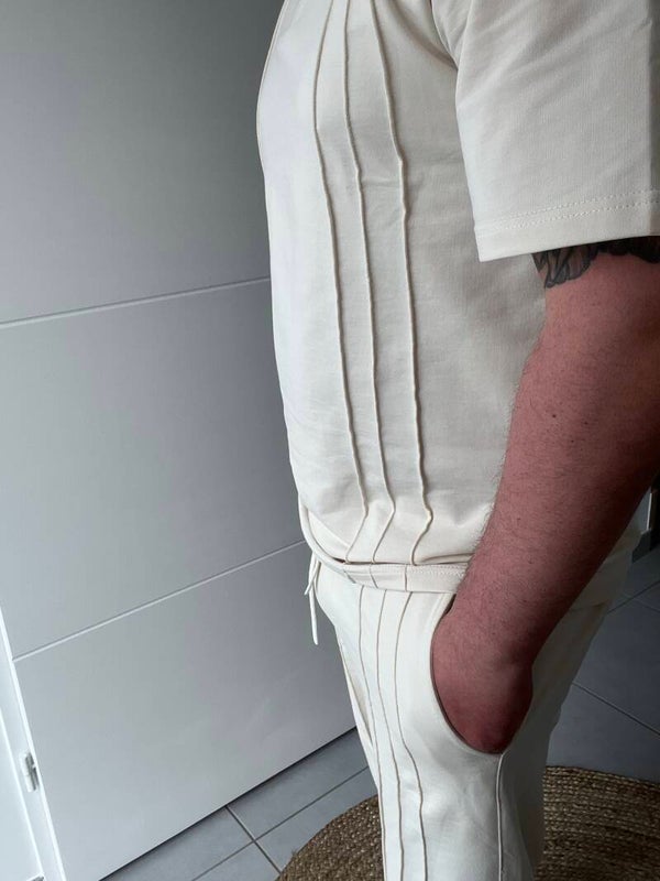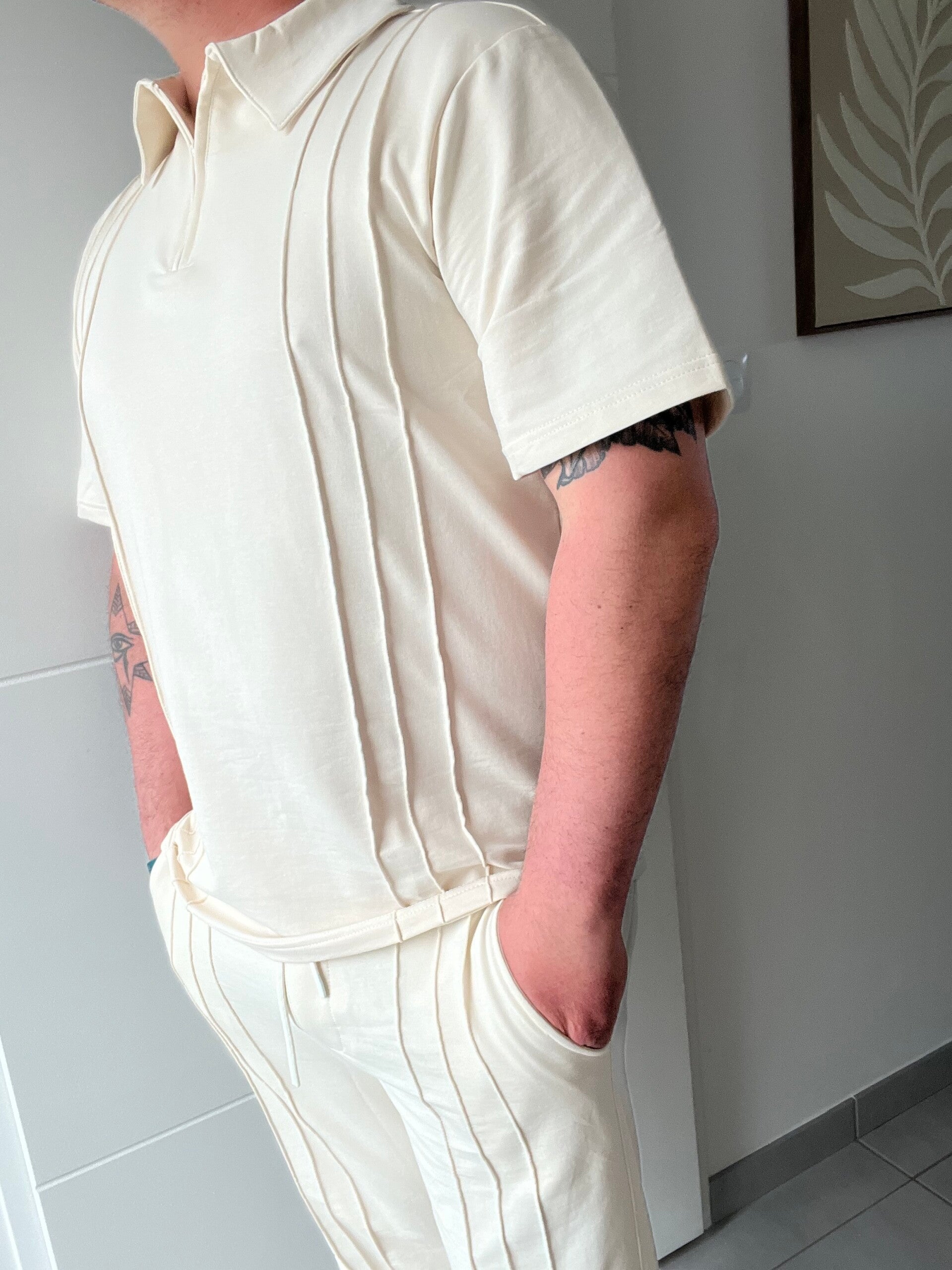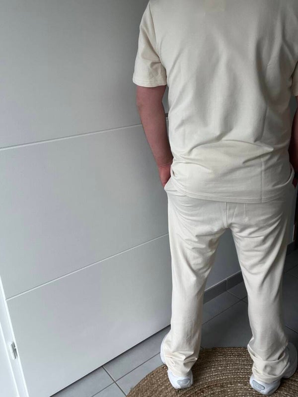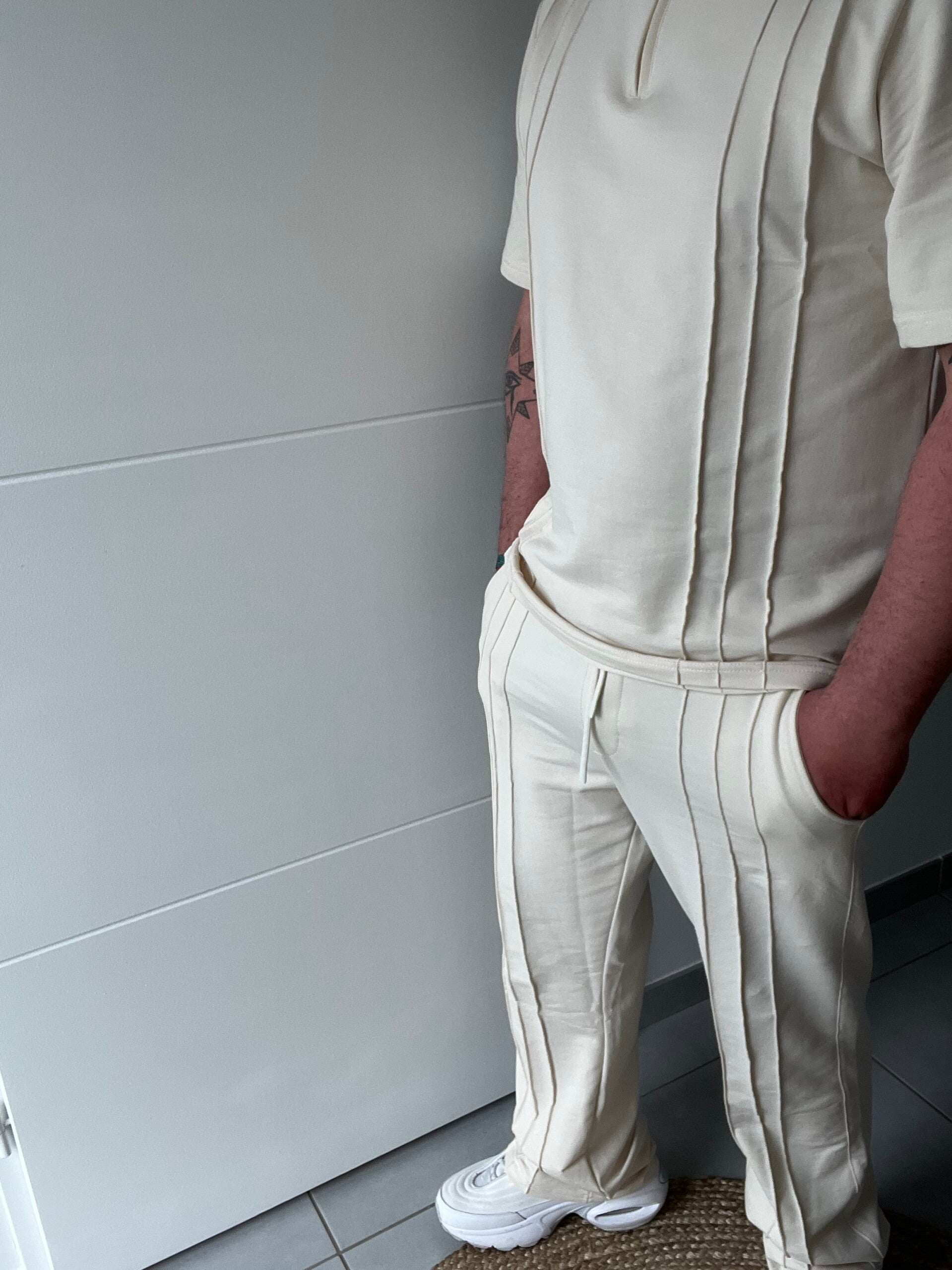 âš Ensemble, fluide, beige, léger et parfait pour la saison , Polo avec zip et pantalon, coupe large qui retombe parfaitement sur la basket, un style top, tendance.