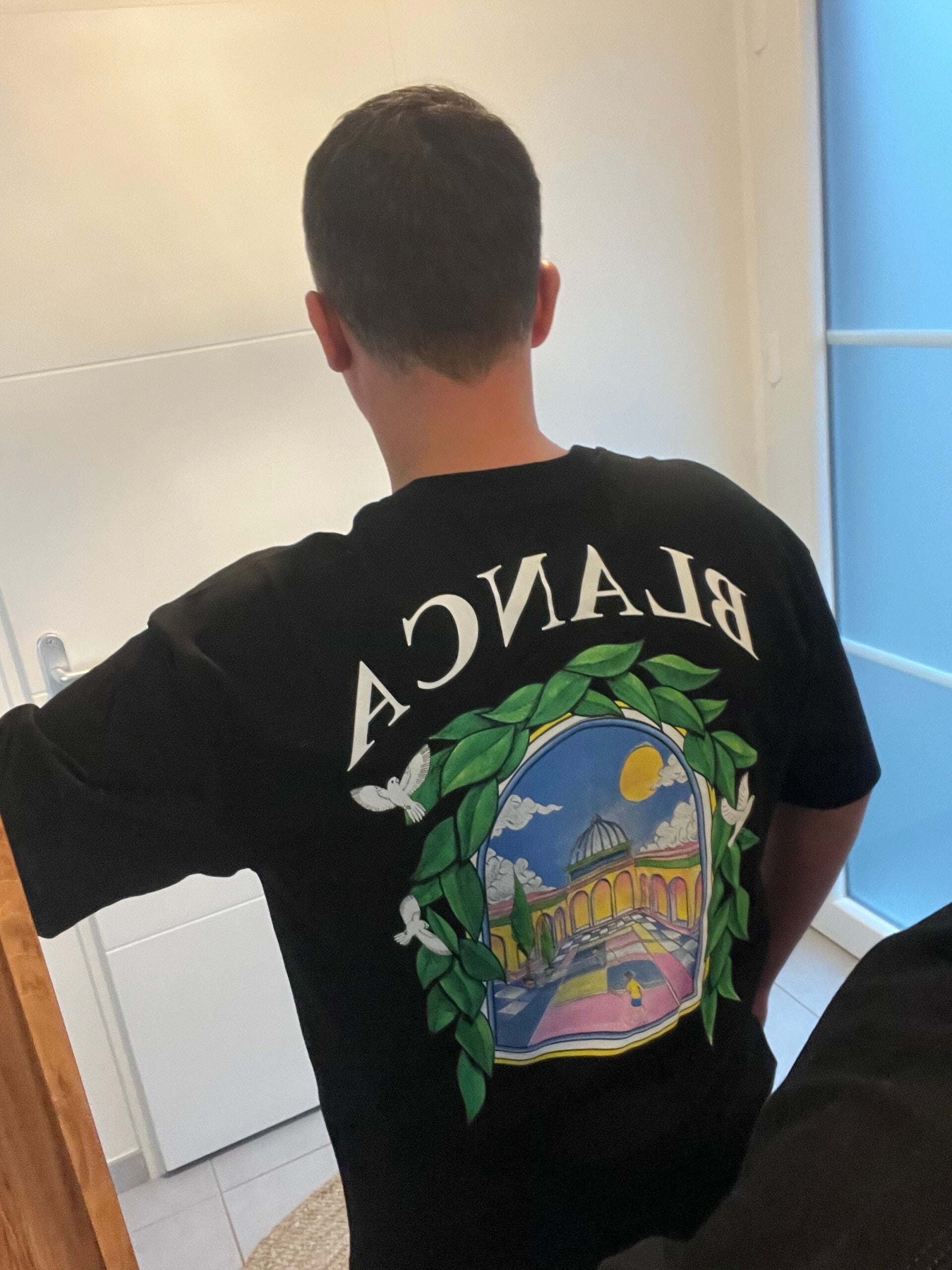 ✨ T-shirt noir coupe droite avec imprimé devant, et derrière de magnifiques couleurs qui égaye et donne un style original✨