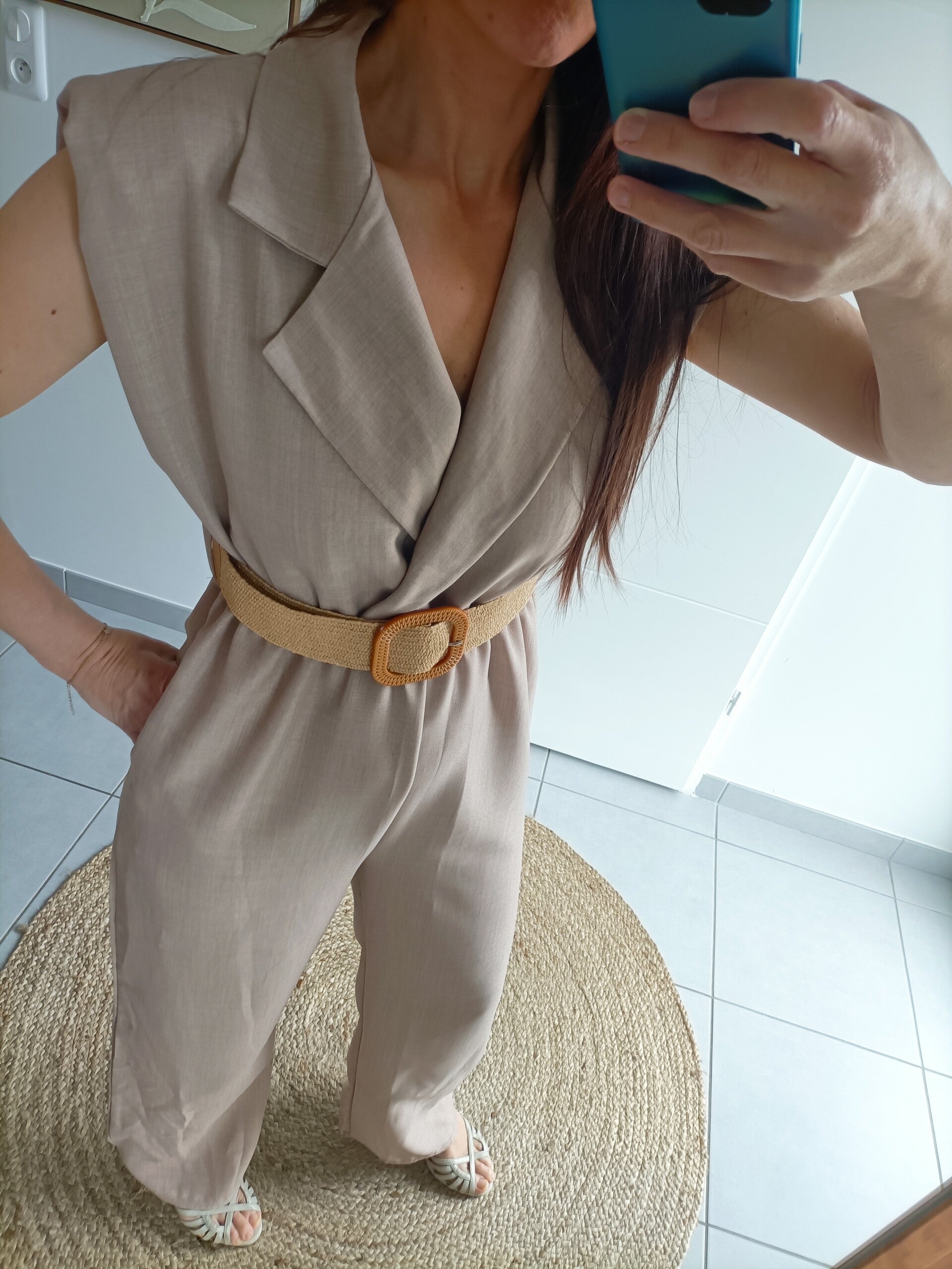 ✨Combi pantalon avec taille élastique et ceinture . Très classe et élégante avec ses épaulettes et son col blazer .✨
