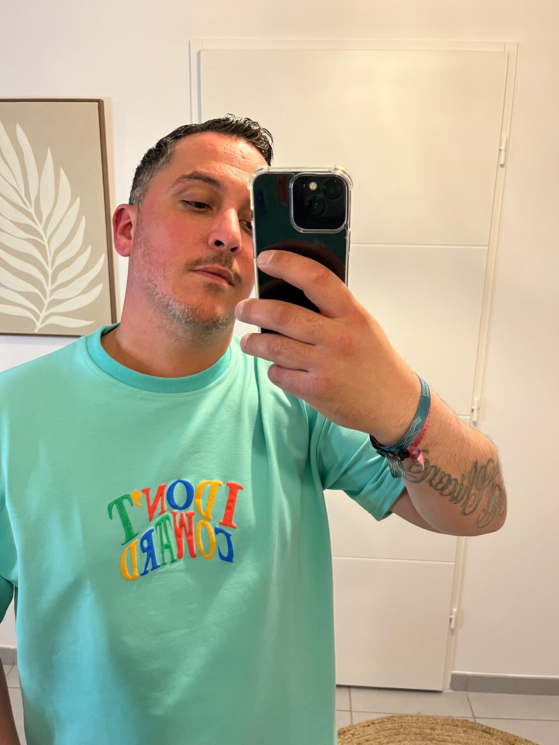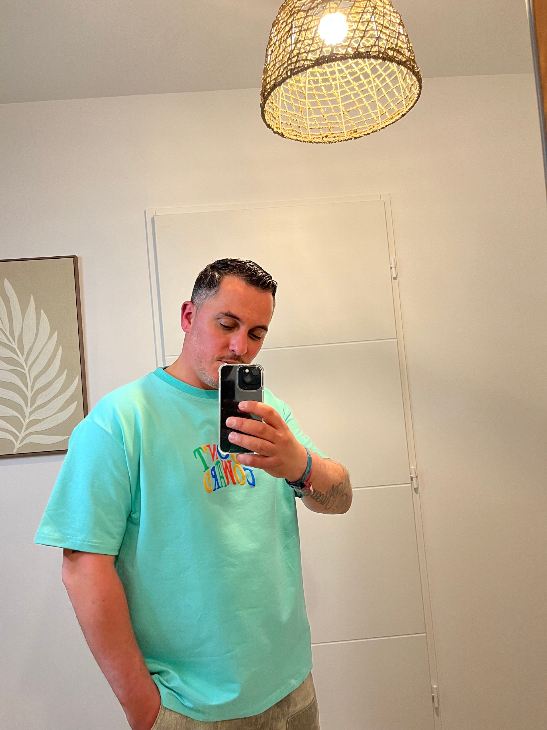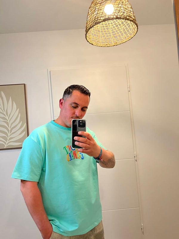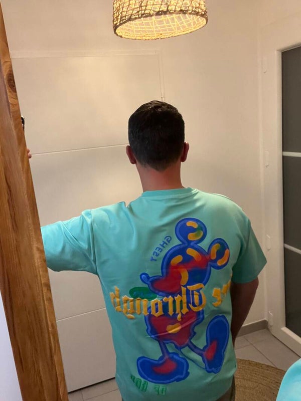 ✨ T-shirt Mickey Oversize couleur menthe Avec imprimé en relief devant et l'originalité au dos, Mickey imprimer relief, multicolore, effet bombe.