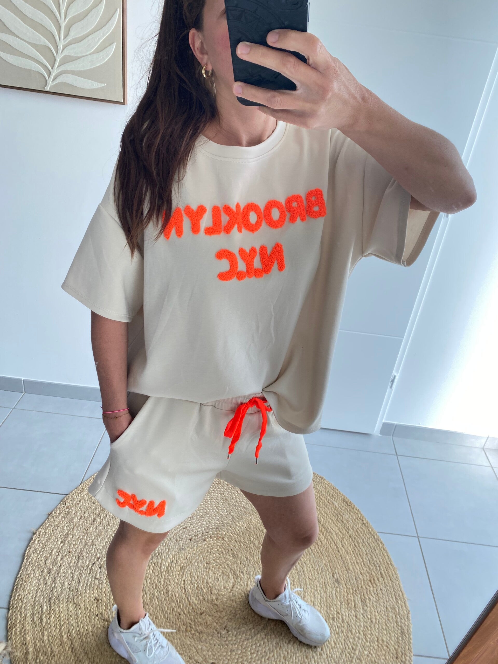 Ensemble short et sweat beige