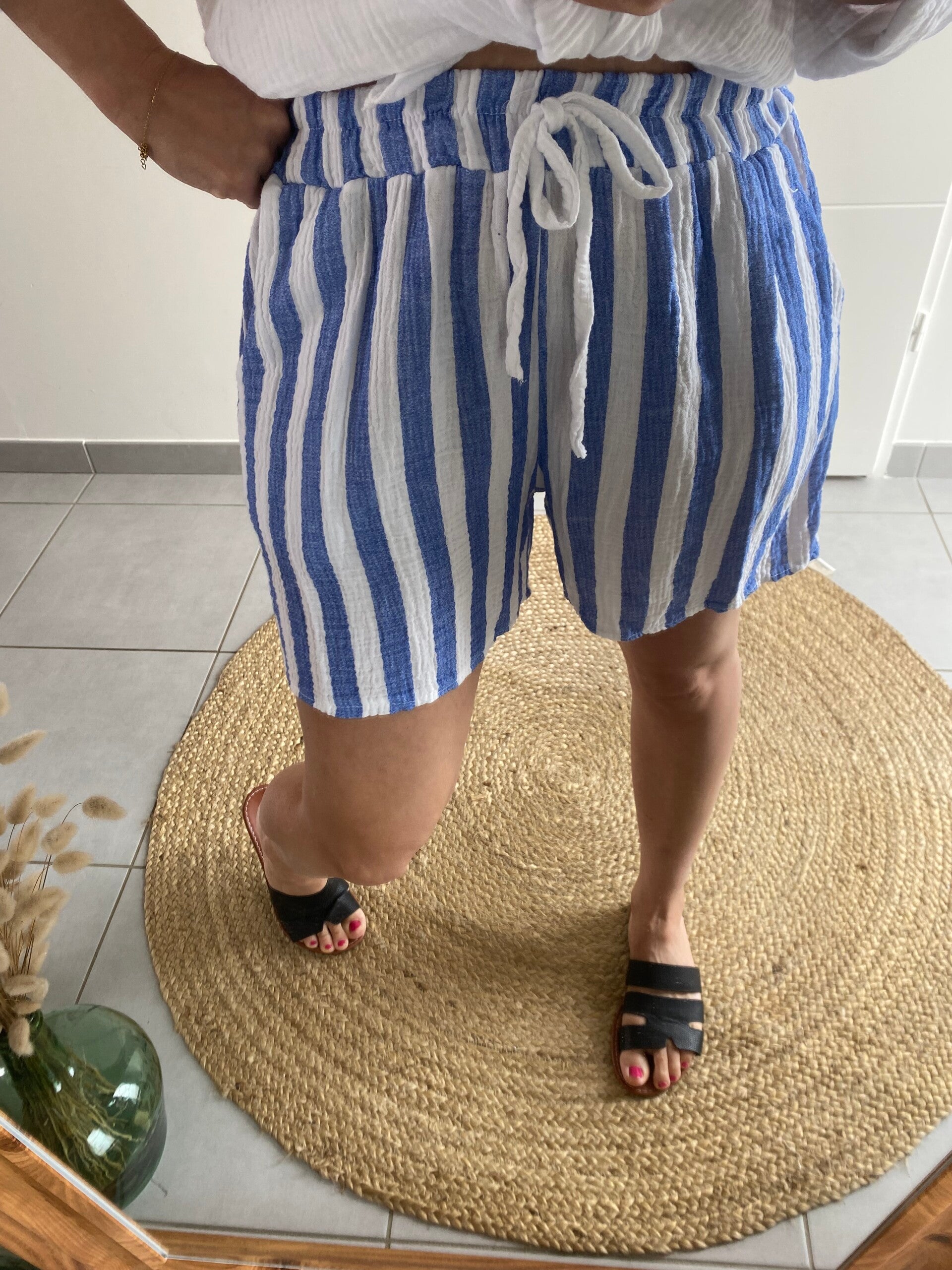 ✨short en gaze de coton ,avec deux poches taille élastique . Longueur 3/4 de cuisses ✨