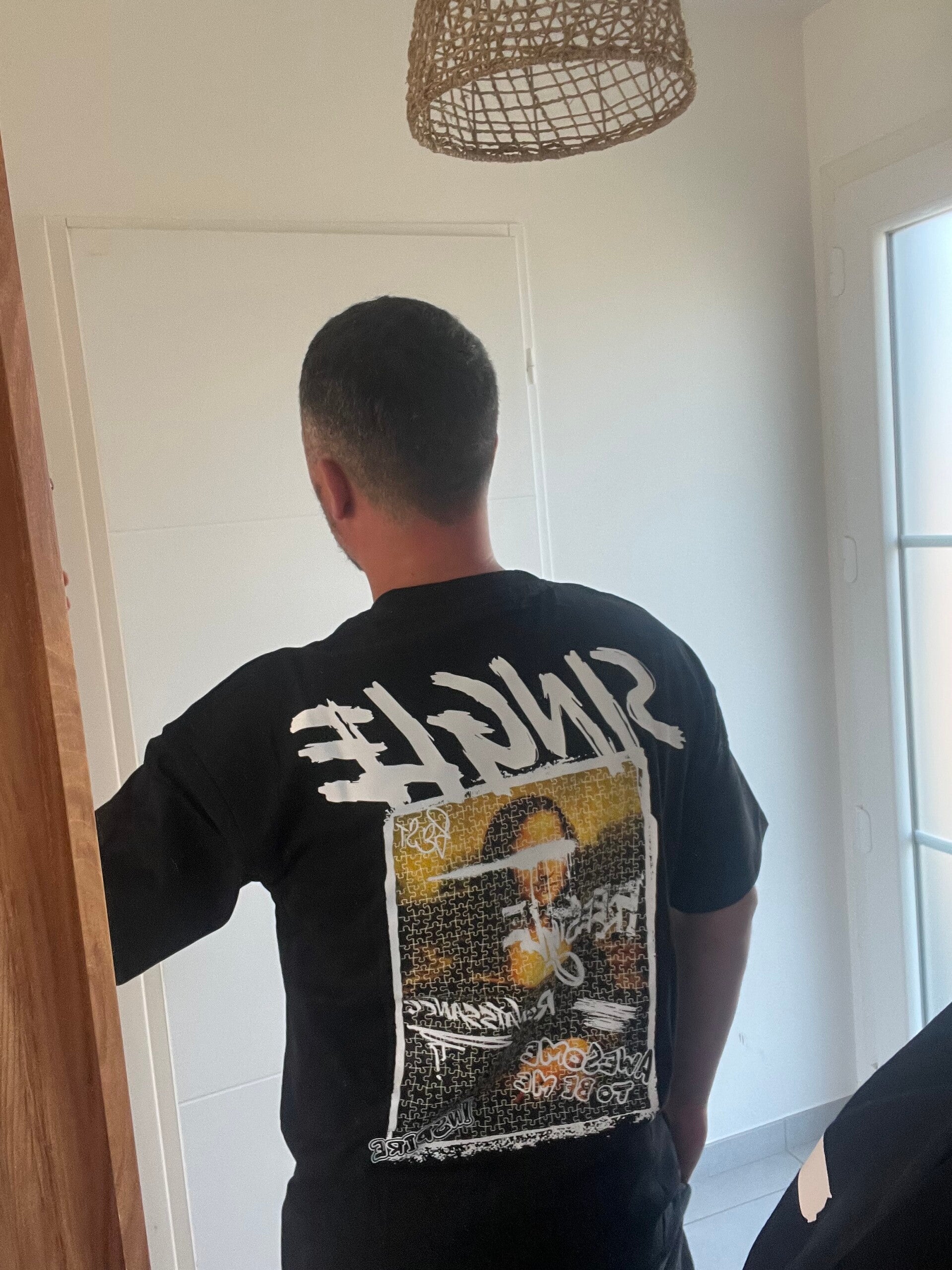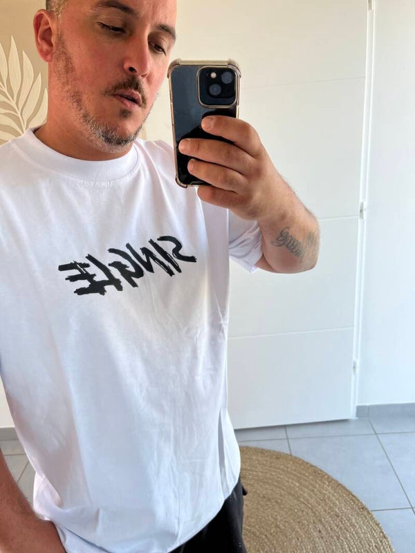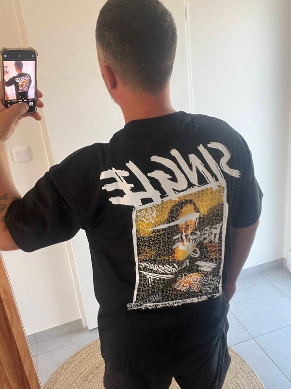 T-shirt Mona Lisa coupe droite avec imprimé à l'avant "single"Sentir à l'arrière, le magnifique tableau de Mona Lisa en imprimé original, le choix des couleurs soit en noir ou bien en blanc.