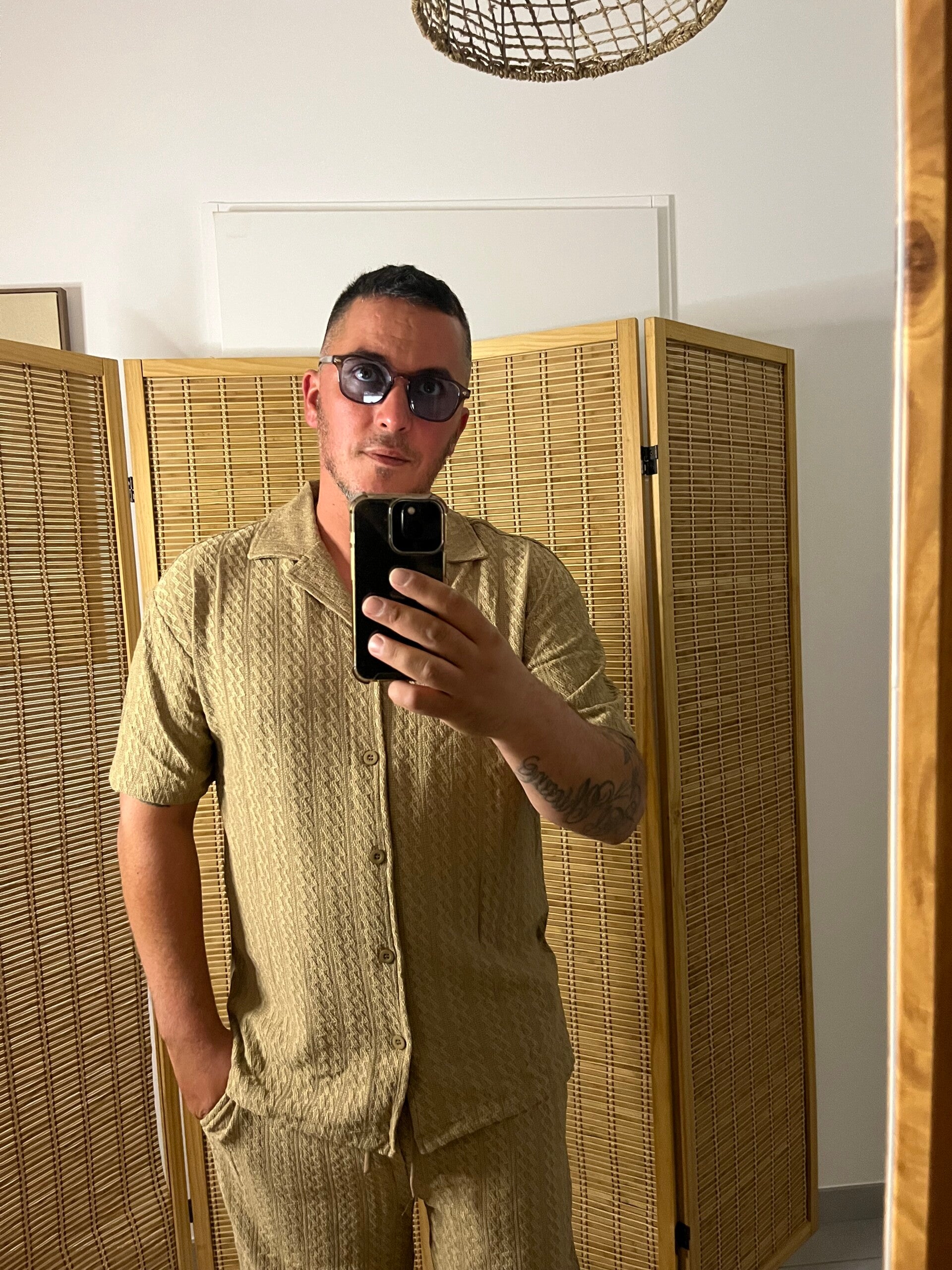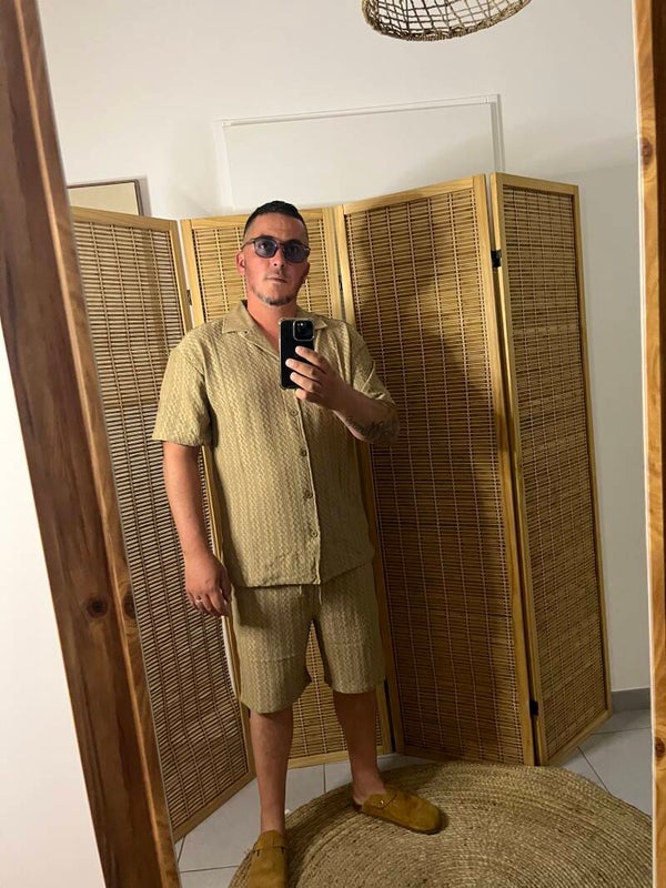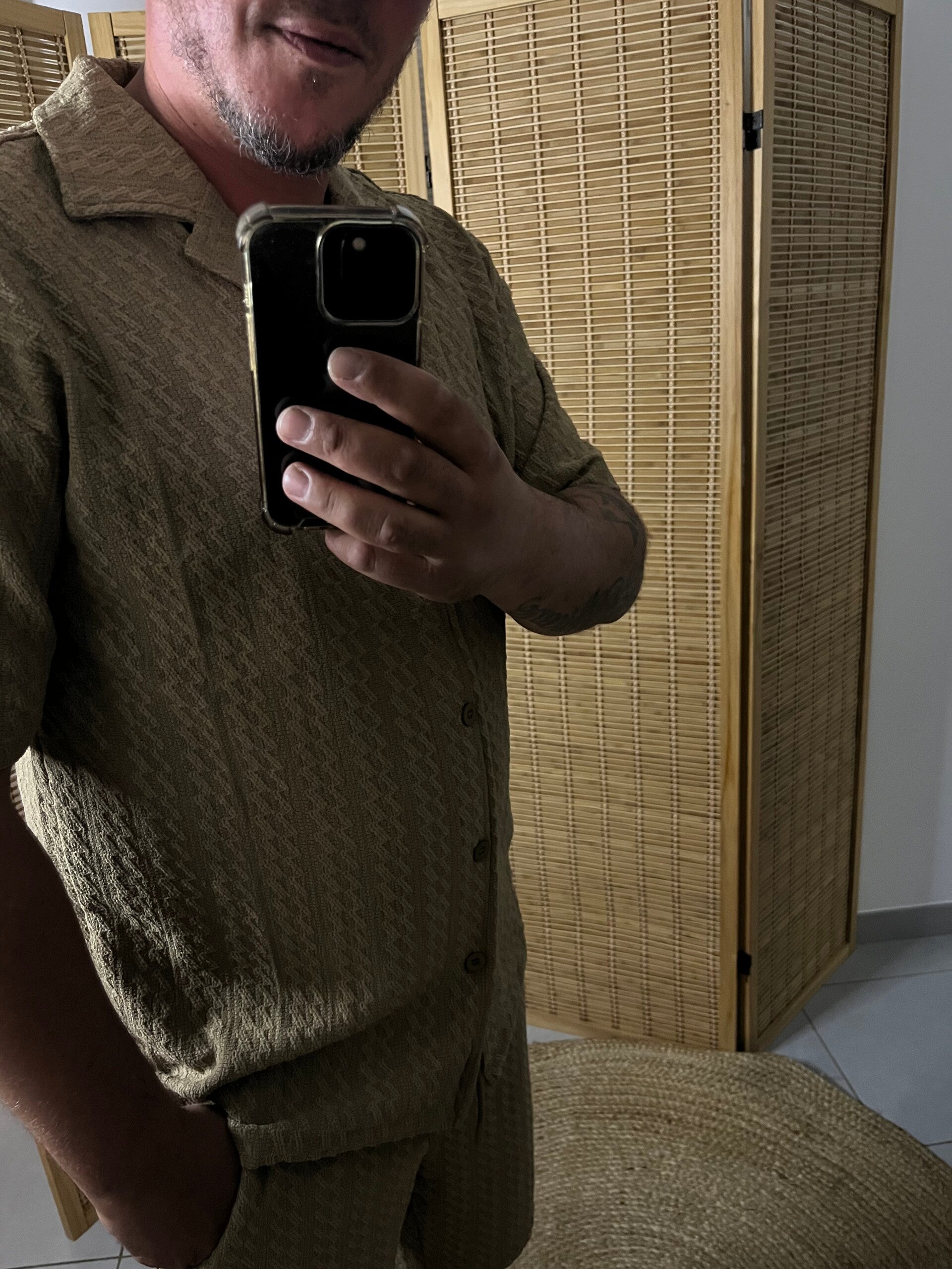 Ensemble, short, chemise agréable aux portées avec son élasticité, motif sur l'ensemble qui donne un style et sa couleur marron, glacée au top de la mode