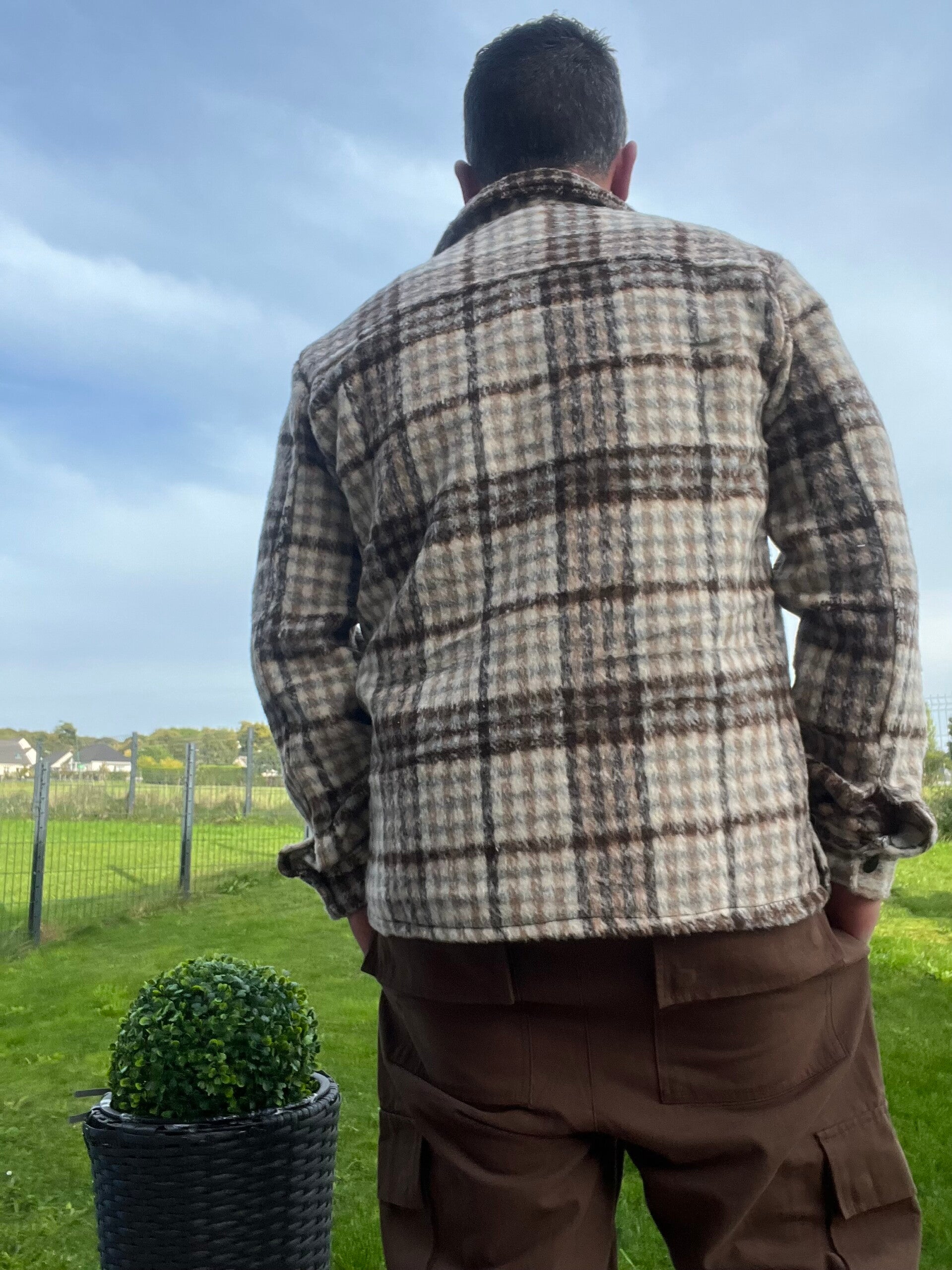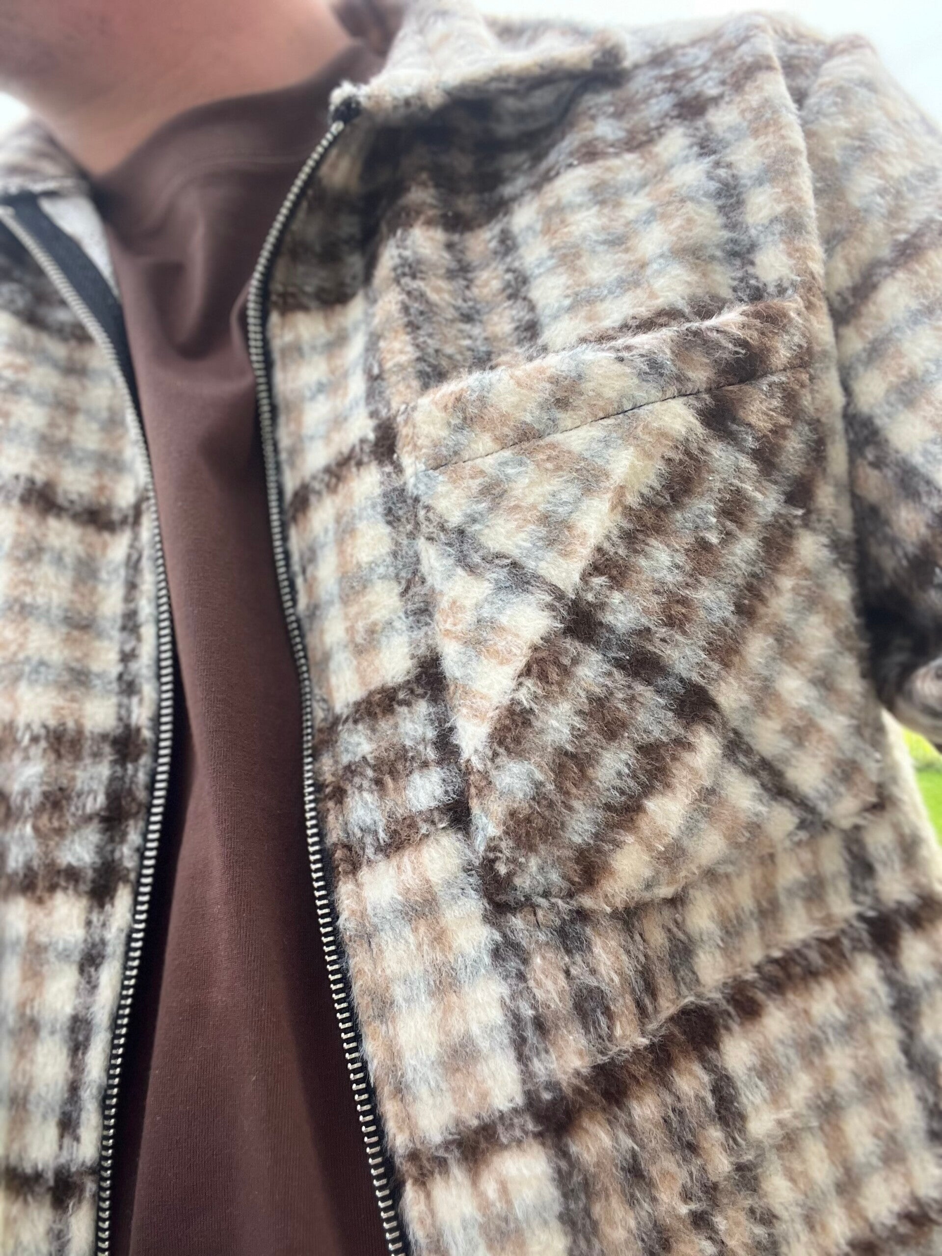 Sur chemise à carreaux beige, blanc et marron zipper.
